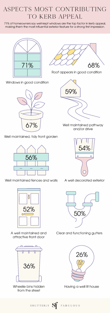After windows, the most important kerb-appeal features included the roof (68%), a tidy front garden (67%), well-maintained pathways, drives (59%) and fences or walls (56%).