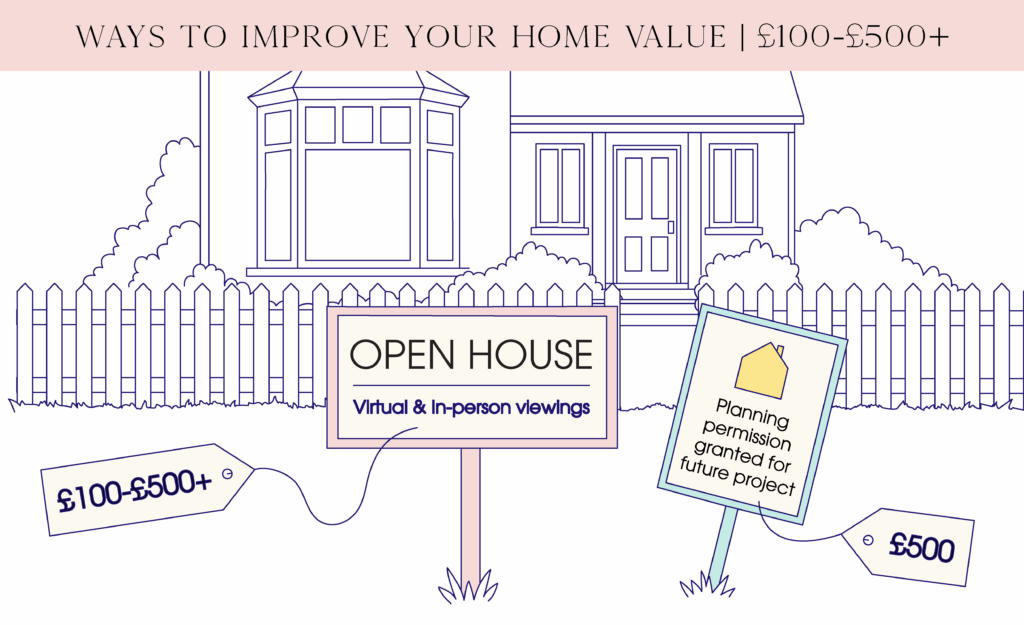 Some other inexpensive ways to improve your kerb-appeal include decorating your garden, refreshing your front door, clearing gutters, hiding wheelie bins and ensuring your home is well-lit.